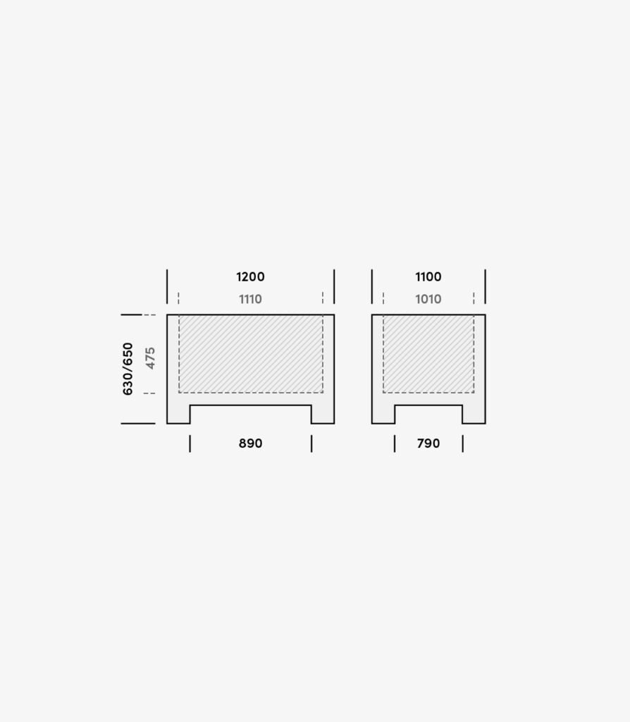 ? Dimensiuni externe: 1200x1000x630 mm (cu picioare) / 1200x1000x650 mm (cu traverse)