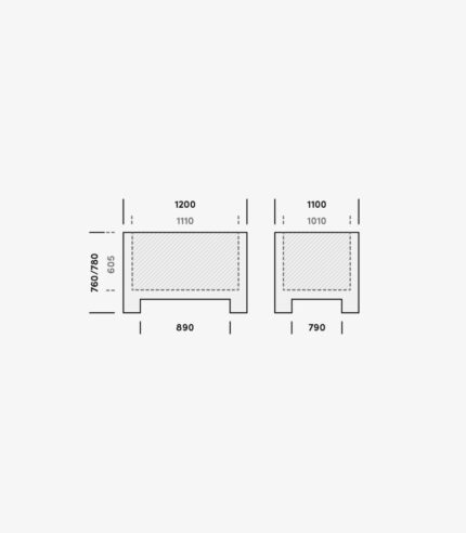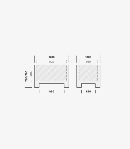 ? Dimensiuni externe: 1200x1200x760 mm (cu picioare) / 1200x1200x780 mm (cu traverse)