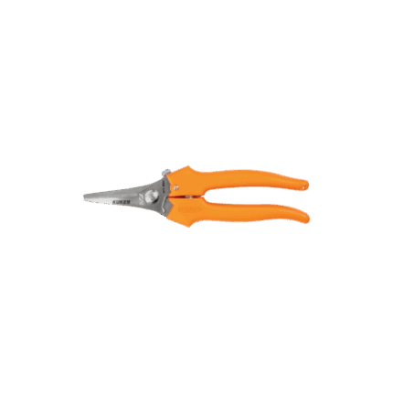 Foarfece cu două tăișuri din oțel forjat cu bucșă de nailon, mânere acoperite cu plastic și fulcrul lateral care permite tăierea cu efort minim. Diametru maxim de taiere: 3 cm Lungime: 21 cm Greutate: 400 gr.